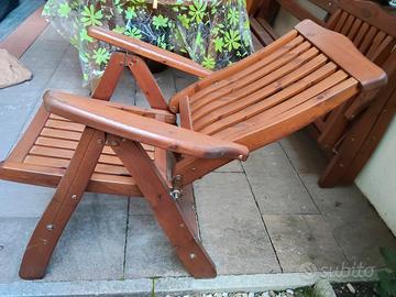 Nr 8 poltrone pieghevoli, con schienale reclinabile in legno marca Gold Kwa (made in sveden) in ottime condizioni. Preferisco vendita in blocco (400 euro) ma posso anche 4 alla volta (220 euro). Prima della consegna trattamento con olio per teak. Ognuna ha il suo cuscino mai usati