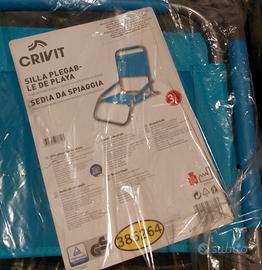 vendo 2 sedie pieghevoli da spiaggia marca Crivit, mai usate ancora imballate.