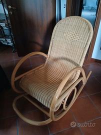 Sedia poltrona a dondolo in rattan vimini naturale