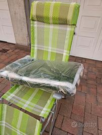 sedia a sdraio in alluminio e texilene ,con in più cuscino lungo,leggera e pratica.Usata pochissimo e in casa!