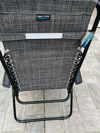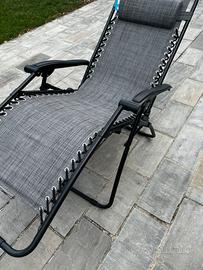 Sedia sdraio nuova . Reclinabile con cuscino e vassio porta oggetti. Mai usata , ancora con cartellino. Prezzo 70€