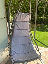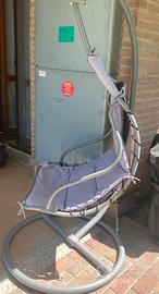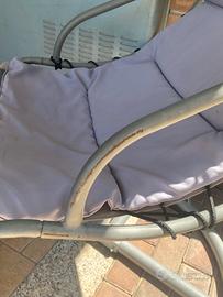 Sedia sospesa in acciaio con cuscino removibili e lavabile in lavatrice. Segno di usura nell’ultima foto