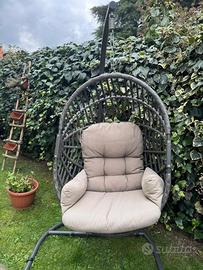 Sedia sospesa Leyburn pieghevole in acciaio con cuscino, colore tortora. Robusta, pratica e salvaspazio. Dimensioni 81x66xH122 cm. Ottima per terrazzo o giardino.