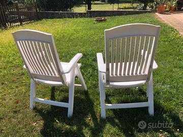 Vendo sedie a sdraio da giardino di qualità praticamente mai usate e sempre state rimessate . Richiesta per entrambe 85 €. Se vi sembra folle come richiesta provate a vedere quanto costano nuove.