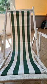 Vendo 2 sedie a sdraio in legno verniciato bianco con teli nuovi. Usate un paio di volte, vendo per inutilizzo Prezzo 120 euro trattabili.