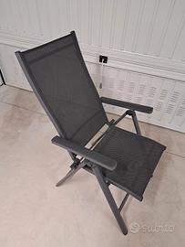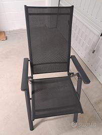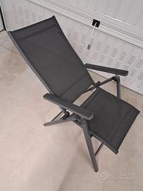 coppia di sedie a sdraio colore grigio scuro con struttura in alluminio con diverse posizioni reclinabili, per giardino e terrazze.