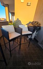 Vendo due sedie per esterni son seduta alta (tipo bancone bar). Altezza seduta 70 cm. Altezza totale 100 cm. Larghezza e profondità 50x50 cm. Complete di cuscini sfoderabili. In ottime condizioni. Non spedisco, solo ritiro a mano presso Motta Visconti (MI)