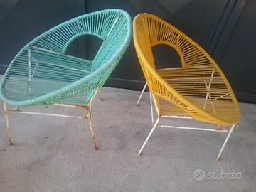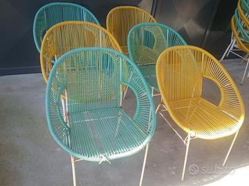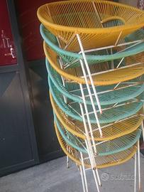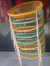 18 sedie bar vintage ,struttura in ferro e seduta in fili di plastica (spaghetti)