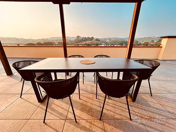 Vendo n.6 sedie da esterno in metallo verniciato a polvere e corda, seduta con cuscino coordinato, usate, in ottime condizioni, qualche segno di usura solo su 1 sedia. Solo consegna a mano su Scandicci, no spedizione. Prezzo non trattabile.