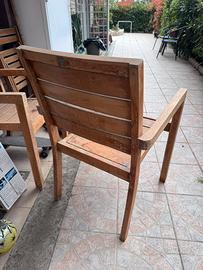 Vendo 2 sedie da esterno in teak. Impilabili e molto resistenti. Sono solamente da rilevigare e impregnare.