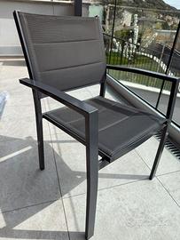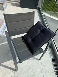 Set da 6 sedie da esterno o giardino con cuscini nuovi . Design moderno color antracite. Il prezzo è per singola sedia , non vendo separato