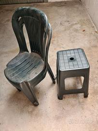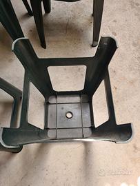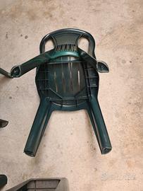vendo coppia di sedie e coppia di sgabelli verdi in plastica da giardino molto resistenti e solide, sgabelli con foro centrale per ombrellone ,stoccati in garage da alcuni anni e impolverati, mai utilizzati .prezzo x pz. 6 euro per le sedie e 5 euro per sgabelli con foro -consegna a mano