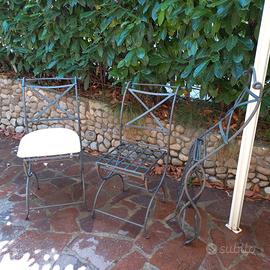 n. 6 sedie da giardini ,in ferro battuto, con rispettivi cuscini . Ritiro a carico del compratore.