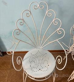 Vendo 4 sedie da giardino in ferro battuto, colore bianco, dal design romantico e raffinato.