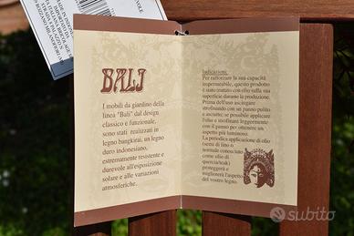 Coppia di sedie da giardino o da terrazzo in legno bangkirai (legno indonesiano), con i cartellini originali, made in Indonesia. Occupano poco spazio e sono richiudibili ma molto robuste. Non si effettuano spedizioni, solo consegna a mano previo accordo, disponibile per consegna a domicilio su brevi distanze con modico sovraprezzo da concordare. Il prezzo si intende per entrambe le sedie.