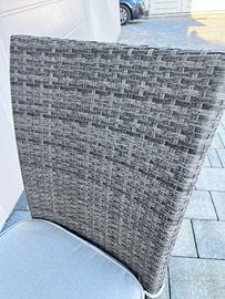 Vendo per inutilizzo n 6 sedie da giardino in Rattan (PE) in perfetto stato (sempre tenute sotto una copertura mai) dimensioni H 95 seduta 40 x 40
