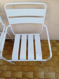 vendo panchina lunghezza 145 in pvc opacizzata come da foto e n°2 sedie da giardino in ferro misure 56x45 come da foto. sono presenti piccole sbucciature.prezzi dacconcordare.