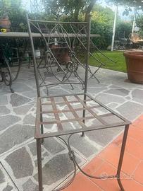 Vendesi sedie in ferro, n. 6 senza braccioli e n. 2 con braccioli. Le sedie si presentano bene, solo da riverniciare.