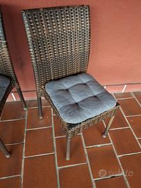 Vendo sedie da esterno in finto rattan in ottime condizioni come da foto. Regalo cuscini. N. sedie 29.