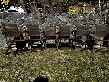 Vendo 12 sedie di legno da esterno 6 con braccioli e 6 senza braccioli , anche separatamente . Prezzo 10,00 € ciascuna