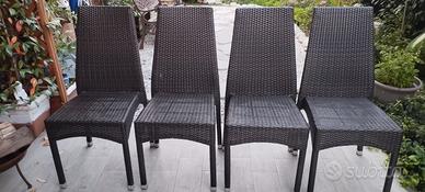 4 sedie in rattan sintetico tenute molto bene. Vendo causa trasferimento. Vendo tutte e 4 insieme. Prezzo 80€ (tot) trattabile ma non troppo. Sono ricoverate in un box a Rho in provincia di Milano.