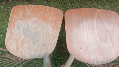 Vendo 6 sedie seduta in legno telaio cromato,alcune presentano scolorimento seduta,ruggine zona saldature,sono comunque sicure nella seduta nello stato in cui si trovano.
