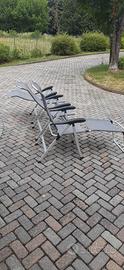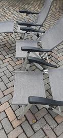 N3 sedie in alluminio richiudibili e regolabili in 3 posizioni....come in foto.... più una prolunga per rendere la sedia una sdraio... vedesi anche separatamente..50 euro l'una. tutte e tre con prolunga 120 euro