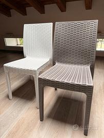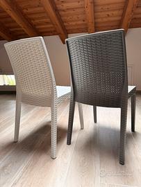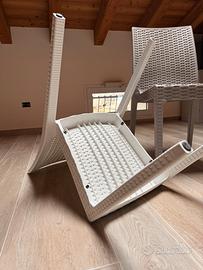 Sedie in Polyrattan Made in Italy per arredare con stile ogni tipo di ambiente, soprattutto l’esterno oppure il campeggio. La sedia è realizzata in rattan sintetico dalle eccellenti qualità che le conferisce non solo una resistenza ai fenomeni climatici e ai raggi UV ma anche un’ottima robustezza e stabilità, garantendo allo stesso tempo durabilità, il tutto con la tipica bellezza dell’intreccio in rattan naturale. L’ampia seduta è piacevolmente comoda, così come lo schienale ergonomico. La sedia è anche impilabile in più unità per facilitarne il riordino. Confortevole e adatta a svariati contesti. Purtroppo utilizzate solo un paio di volte. Davvero molto molto robuste, linea moderna ed elegante.