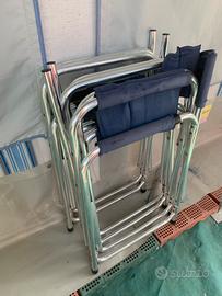A prezzo simbolico per 4 sedie da regista in alluminio superleggere. Ottime per camper e campeggio. Telaio molto robusto. Attenzione: Le stoffe sono da rifare o sistemare. Vendo in blocco a 10€ tutte Consegna a mano a Bologna