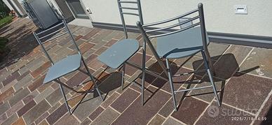 Vendo n. 3 (tre) sedie pieghevoli color grigio semi imbottite per giardino, feste campeggio, richiuse occupano poco spazio. Le sedie chiaramente sono usate con segni di usura (sistemate) ma stabili nella seduta e nella chiusura perfetta. Visibili a Levico Terme, previo accordi posso consegnare anche a Trento nord e a Taio/Val di Non, vendo ad Euro 7,00 caf.una
