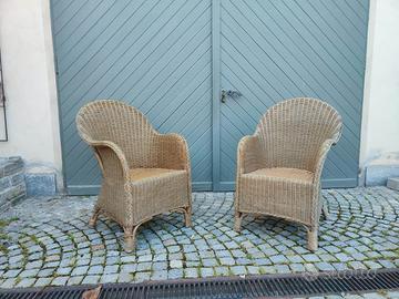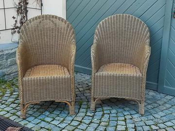 Coppia di poltrone in vimini ideali per giardino. Misura seduta 50cm×50cm h. 80cm