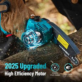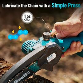 πγ900W AGGIORNAMENTO MOTOSEGA DA 6 POLLICIγQuesta motosega da 6 pollici Γ¨ dotata di lubrificazione del serbatoio dell'olio. La catena puΓ² essere lubrificata automaticamente, riducendo cosΓ¬ la resistenza all'attrito della catena di trasmissione quando si utilizza la sega elettrica a batteria e ottenendo un taglio regolare. Con una velocitΓ della motosega di 16,4 piedi/s, bastano circa 10 secondi per tagliare un tronco con un diametro di 15 cm, proprio come tagliare il burro.