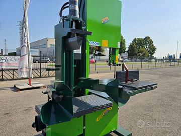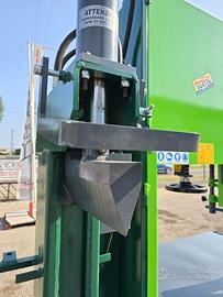 Spaccalegna verticale da 15 tonnellate girevole: può essere usato di fronte o sul retro della macchina a seconda se la lavorazione avviene con uno o due operatori. Maniglie per lo spacco in tutta sicurezza.