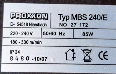 Vendo sega a nastro da banco Proxxon MBS 240/E in buone condizioni e perfettamente funzionante. Ideale per lavori di precisione su legno, plastica e materiali leggeri. Caratteristiche: •Alimentazione: 220–240 V •Potenza: 85 W •Velocità lama: 180–330 m/min •Tavolo regolabile per tagli precisi •Struttura solida e compatta •Attacco aspirazione trucioli Ritiro a mano.