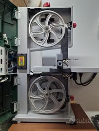 Specifiche tecniche: Potenza nominale: 350 W Velocità di assenza di carico: 1.500 giri/min Velocità di taglio: 900 m/minuto Dimensioni della pittura: 30 x 30 cm Regolazione della tabella: 0 - 45° Ruota a banda: 20 cm Lunghezza della banda sega: 1.400 mm Larghezza della banda sega: 7 mm Altezza/larghezza massima di passaggio di 90°: 80/200 mm Altezza/larghezza massima di passaggio di 45°: 50/200 mm Livello di pressione sonora: 75,6 dB (A). Livello di potenza sonora: 88,6 dB (A) Materiali: Acciaio, plastica Dimensioni: circa 45 x 36 x 69 cm Peso: circa 15.940 g