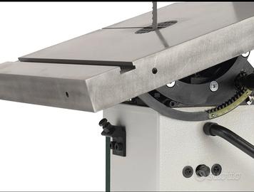 Sega a nastro professionale RECORD POWER SABRE-350 Ø volano 350mm 230v NUOVA VERSIONE 2025 Usato pari al nuovo, completa di kit ruote, piano d’appoggio inclinabile e kit guida goniometro per tagli a squadro. Nuova e migliorata per il 2025, la SABRE-350 è stata progettata per essere la sega a nastro ideale per l’officina domestica, offrendo una serie di caratteristiche innovative e specifiche generose, che la rendono la macchina più capace, potente e facile da usare della sua categoria. Specifiche tecniche: Profondità massima di taglio: 285 mm Profondità: 345 mm Dimensioni Tavolo: 546 x 400mm Altezza tavola dal pavimento: 1029 mm Velocità lama: 440 e 1000 m / minuto Sviluppo lama: 2819 mm Larghezza lama: 6 - 19 mm Potenza del motore: 1500 W - 1,5 hp Diametro bocchetta aspirazione: 100 mm Peso: 116 kg Dimensioni: 1892 x 870 x 656 mm
