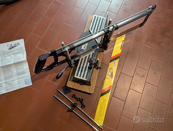 Sega ad Angolo di Precisione. Lama lunga 550mm, larga 45mm. Tavolino lungo 400mm, largo 80mm. Massima profondita' 120mm, a 45 gradi 105mm, a 90 gradi 170mm. Lama intercambiabile. Inclusa nella confezione viene aggiunta 1 lama di ricambio (vedi foto). Marchio TÜV GS