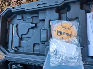 Vendo sega ad immersione causa inutilizzo. È stata usata un paio di volte e i dischi sono ancora quelli originali, a parte uno che ha fatto qualche taglio ma è al 90% e quindi ancora utilizzabile. Non ha graffi o imperfezioni e la vendo con le guide anche loro usate un paio di volte. Le guide sono fissabili ad un banco lavoro tramite apposito chiavistello. La sega ha un tubo che si attacca al proprio aspirapolvere per non mandare in giro la polvere del taglio che si sta facendo,ha la guida laser per avere un taglio preciso, custodia e istruzioni in varie lingue. Le caratteristiche tecniche sono nelle foto.