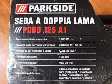 Sega circolare a doppia lama controrotante Parkside modello PDBG 125 A1 introvabile unica nel suo genere con doppia lama da 125 mm controrotante nuova completa di lame e valigetta. Prodotto originale Parkside nuovo rimanenza di magazzino
