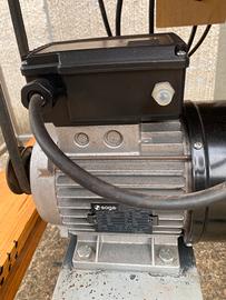 Sega elettrica circolare con motore mono fase (caratteristiche tecniche nella targhetta in foto) montato nuovo usato pochissimo. Struttura pesante in ferro zincato, piano in ferro, distanziale per scegliere la misura del legno da tagliare. Ruote fissate alle sbarre di legno per un facile posizionamento sono amovibili togliendo i 4 bulloni che le fissano al legno ma sono anche sollevabili a mezzo di spessore in legno (vedi foto). Protezione sega di colore rosso e 2 lamiere a protezione della parte inferiore della sega. Misure cm. 101x66x 98 (con ruote) e h.cm.88 (senza ruote). Disco diametro cm.40, profondità taglio cm.14, peso kg.70, bloccaggio ruote due o quattro, Tendicinghia, asse disco lubrificabile, piano taglio sollevabile. Per l’omologazione si dovrebbe inserire il pulsante antipanico che attualmente non c’è.