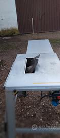 Vendo Sega circolare da banco elettrica 2500 W di potenza movibile uso bricolage. Non è stata utilizzata per passaggio a modello differente. Presenta una lama inclinabile fino a 45°. Possibilità di sollevamento abbassamento della lama . Volendo si può applicare una aspira- segatura (non compreso). C'è un metro da 30 cm di riferimento sul banco da lavoro ed inoltre spingi pezzo. Scrivere se interessati per ulteriori dettagli. Prezzo trattabile