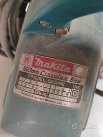 Sega circolareMakita da 160 mm, modello 5600NB. Tipo di utensile:Sega circolare. Marca e Modello:Makita 5600NB. Caratteristiche tecniche: Voltaggio: 220V~. Corrente: 3.9A. Frequenza: 50-60 Hz. Potenza: 800W. Velocità a vuoto: 4000 giri/min.
