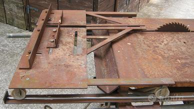 Vendo come da foto sega circolare ad acqua per marmo, mattoni, ecc. e LEGNO , adattata con piana scorrevole per il taglio e ruote per spostamenti, con morsa per piccoli lavori .Aggiungo tre dischi per il legno e uno per il marmo.