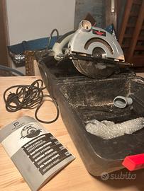 Sega circolare Performance Power modello NT1200SC completa di valigetta rigida e manuale originale multilingua. L’attrezzo è perfettamente funzionante, usato saltuariamente per piccoli lavori di falegnameria domestica. La lama e il motore sono in buono stato. La valigetta ha un po’ di polvere dovuta ai tagli eseguiti, ma resta solida e pratica per il trasporto.