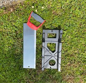 Vendo kit per tagli di precisione ( battiscopa ecc….), mai usata, con appoggiatore in plastica con le guide per i tagli a 45, 90 gradi ecc..sega in ferro ed inpugnatura in gomma.