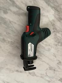 Sega leggera ed estremamente maneggevole per lavorare a una e a due mani Particolarmente adatta per lavorare in punti diffcilmente accessibili Elettronica Vario (V) per lavorare con numero di corse adeguate ai materiali Metabo Quick per la sostituzione della lama senza l'ausilio di attrezzi