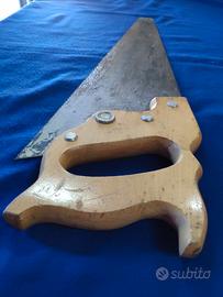 Vendo splendida sega a legno primi '900 prodotta e brevettata in U.S.A. dalla fabbrica Disston. Come da foto, la sega, per la sua vita centenaria, è in ottime condizioni. La lama, perfettamente dritta ha tutti i suoi denti integri e l'impugnatura in legno è in ottimo stato. Affilatura denti del tipo Rip , circa 9 denti per pollice. Lunghezza della lama 25 pollici 1/2 (64,8 cm).