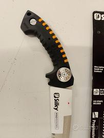 Il Sugoi 420 di Silky è un potentissimo seghetto a mano con lama curva da 420 mm (fino a Ø 210mm). La dimensione dei denti con passo di 6.5 denti ogni 30 mm, rende questo seghetto perfetto per tutte le operazioni di taglio aggressivo ma preciso dei rami. Ciò significa che può gestire sia il legno fresco che il legno un po' più duro e stagionato.