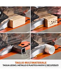 Evolution Power Tools R255TBLX+ Sega Da Banco Con Supporto Lama Da Taglio Multimateriale Taglia Legno Metallo Plastica, Smusso A 45°, Angolo Obliquo +/- 60°, 1800w