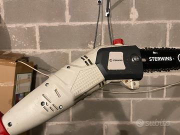Vendo segarami elettrico sterwin con manico estendibile fino a 4 mt motore da 750 w usato pochissimo. Taglia rami con circonferenza max 2 cm. Custodia lama e regalo tanica olio per catena lama